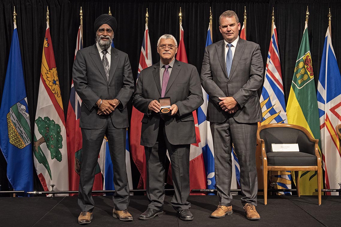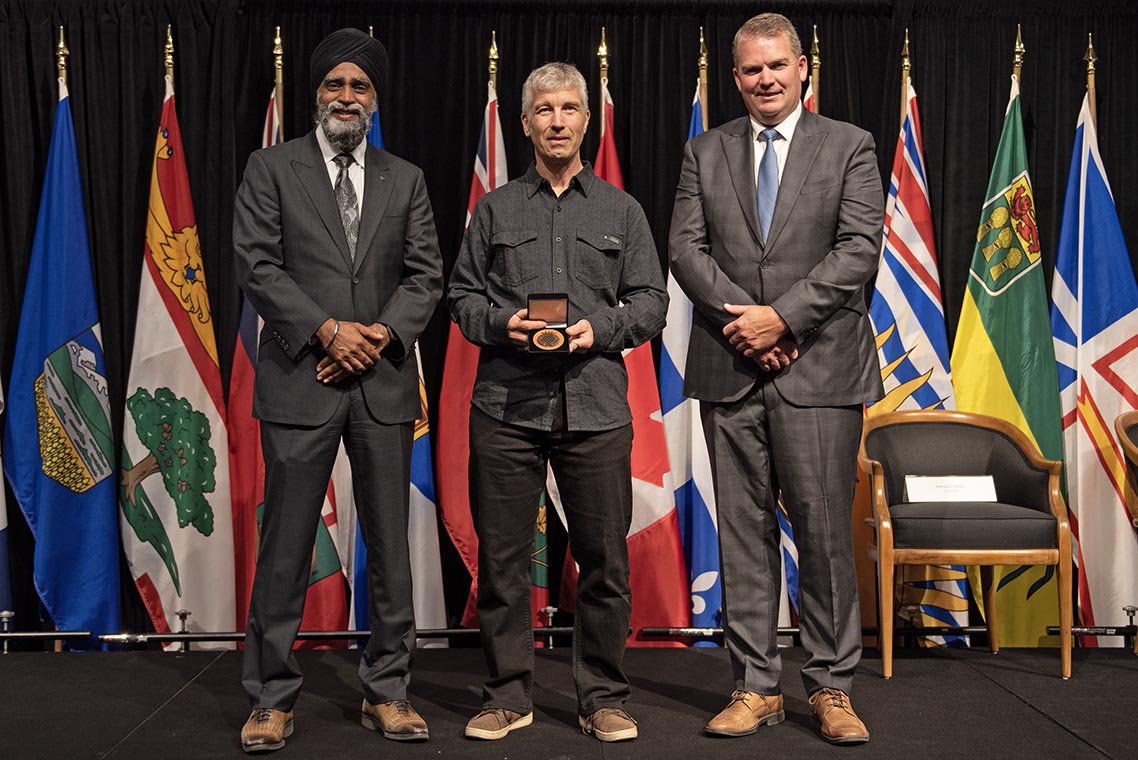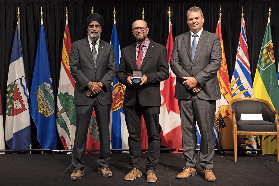 L'honorable Harjit S. Sajjan, président du Conseil privé du roi pour le Canada, ministre de la Protection civile et ministre responsable de l'Agence de développement économique du Pacifique du Canada (à l'extrême gauche), et l'honorable Bloyce Thompson, vice-premier ministre, procureur général, ministre de la Justice et de la Sécurité publique, Île-du-Prince-Édouard (à l'extrême droite) sont photographiés en compagnie du lauréat 2022 du Prix pour service exemplaire en sécurité civile pour la catégorie de contribution remarquable à la gestion des urgences.