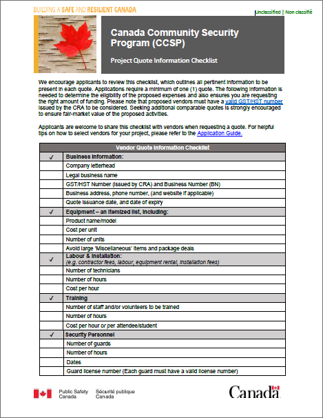 We encourage applicants to review this checklist, which outlines all pertinent information to be present in each quote. Applications require a minimum of one (1) quote. The following information is needed to determine the eligibility of the proposed expenses and also ensures you are requesting the right amount of funding. Please note that proposed vendors must have a valid GST/HST number issued by the CRA to be considered. Seeking additional comparable quotes is strongly encouraged to ensure fair-market value of the proposed activities.