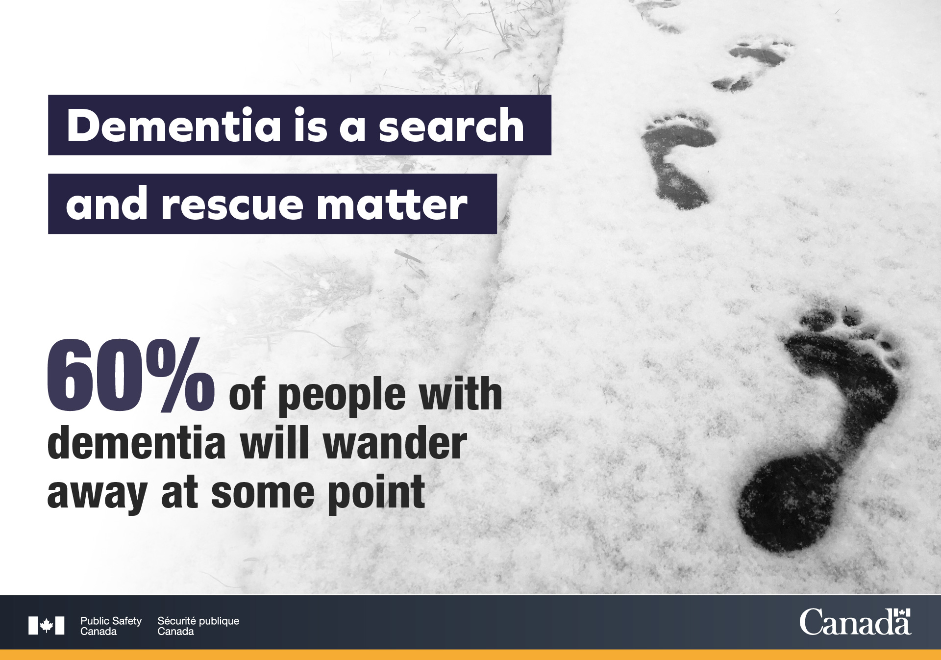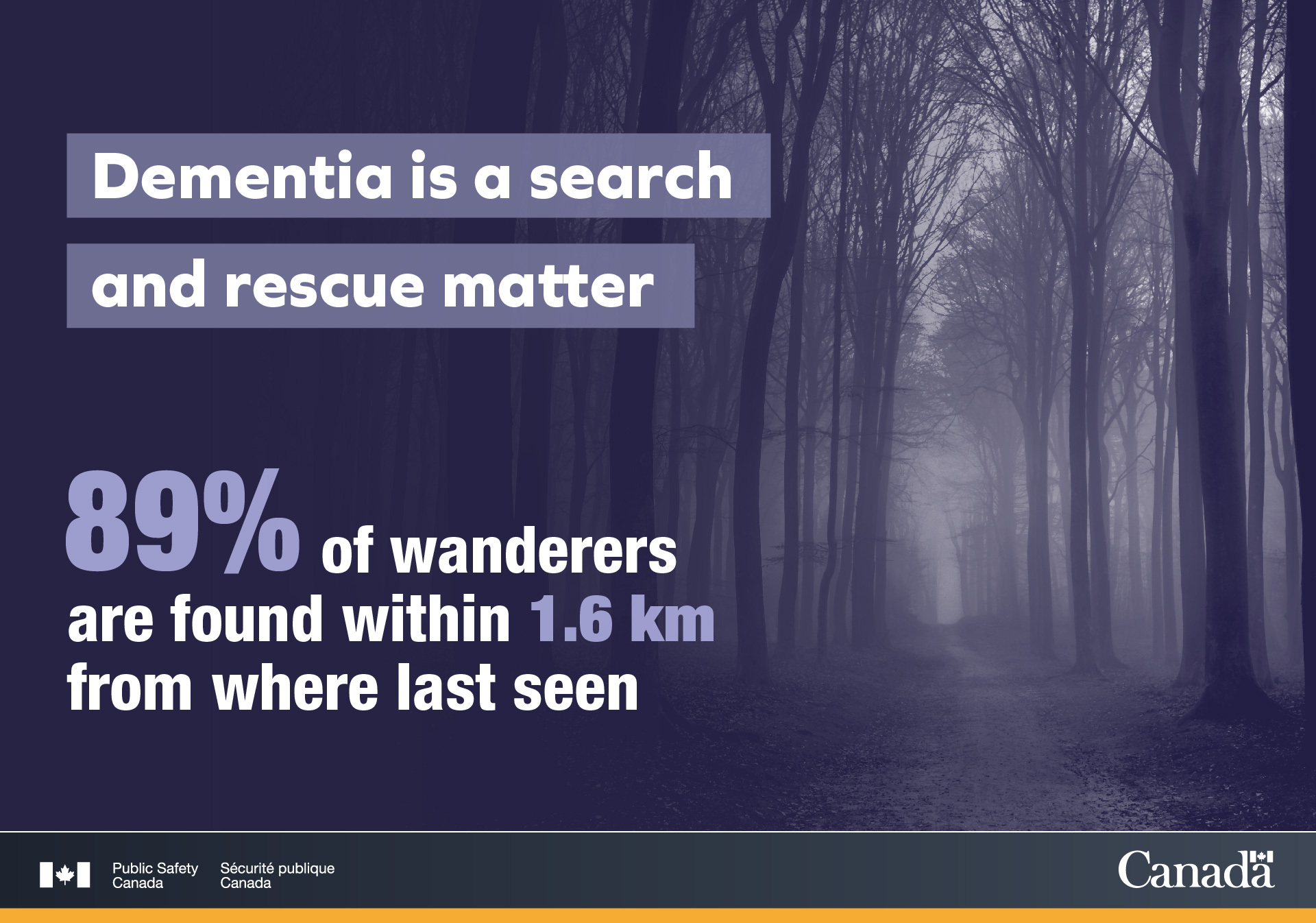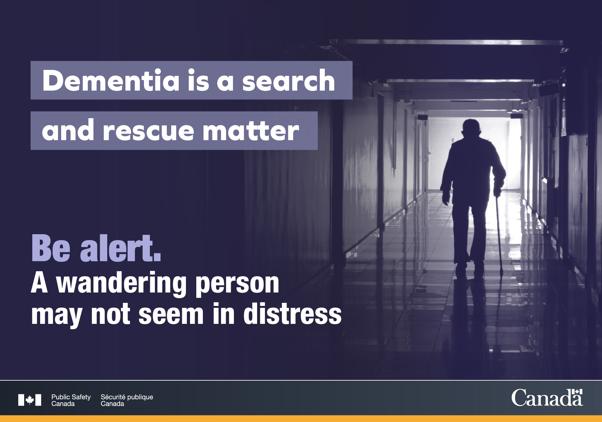Public Safety promotes awareness about the impact of missing persons living with dementiaFootnote 1 on SAR resources on social media platforms. The approach is meant to empower members of the public to recognize a wandering person living with dementia, know how to approach them and call for help. The following downloadable graphics are available for you to use to do the same.