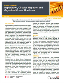 Research Summary: Deportation, Circular Migration and Organized Crime: Honduras PDF Version (136 KB) Deportees from Canada face a variety of economic and security challenges upon their return to Honduras, one of the five most violent countries in the world.