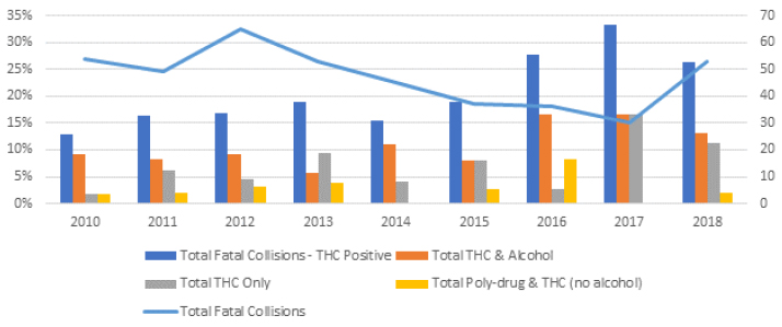 Revision: The decrease in the proportion of THC positive total fatal collisions between 2017 and 2018 was 7% rather that 14%