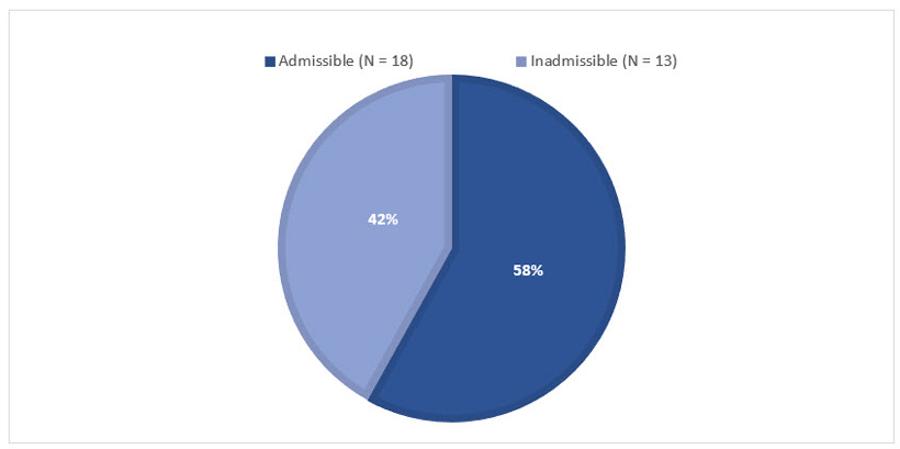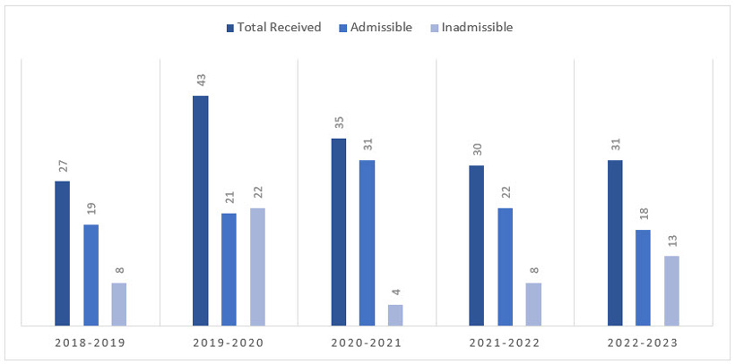 - 2022-2023: 31 Received, 18 Admissible; and 13 Inadmissible