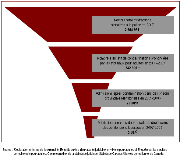 - Un nombre relativement peu élevé de crimes conduisent à l'imposition de peines de détention dans des pénitenciers fédéraux