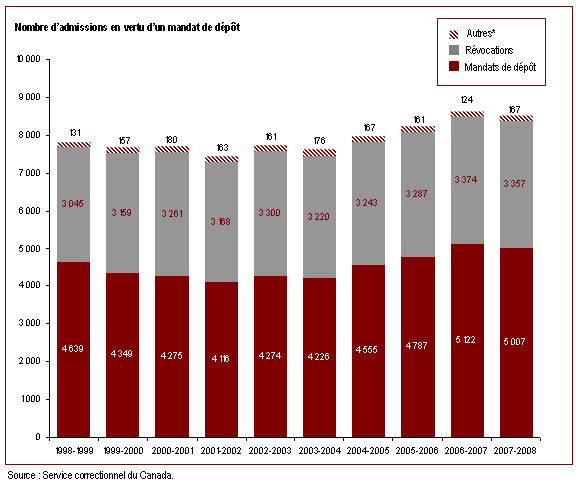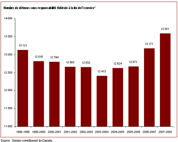 - Le nombre de détenus sous responsabilité fédérale a augmenté en 2007-2008