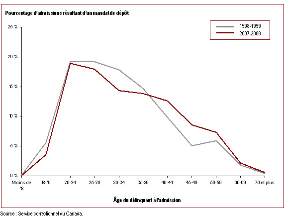 - L'âge des délinquants au moment de leur admission dans un établissement fédéral est en hausse