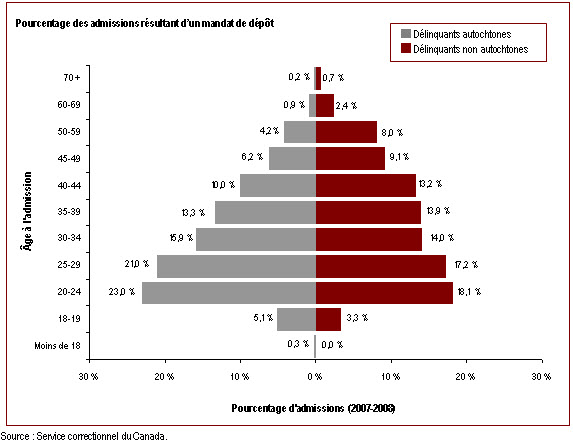 - L'âge moyen à l'admission est plus bas chez les délinquants autochtones que chez les délinquants non autochtones