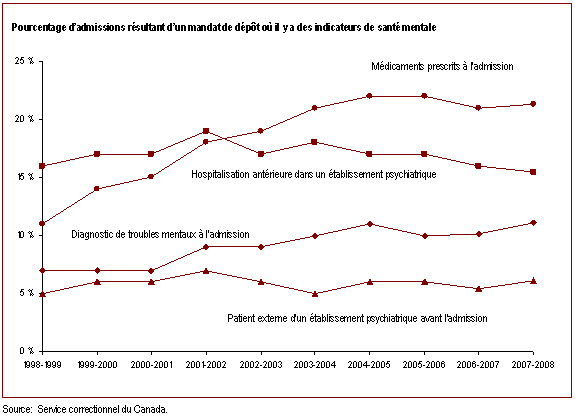 - Onze pour cent des délinquants sous responsabilité fédérale ont un diagnostic de troubles mentaux à l'admission