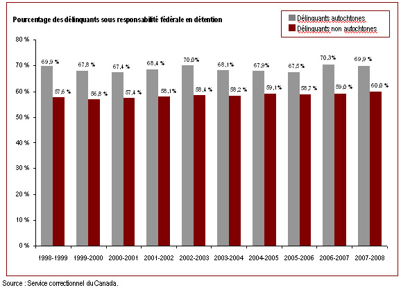 - La proportion de délinquants en détention est plus élevée chez les autochtones que chez les non autochtones