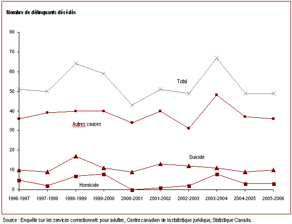 - Le nombre de délinquants décédés dans les établissements fédéraux fluctue