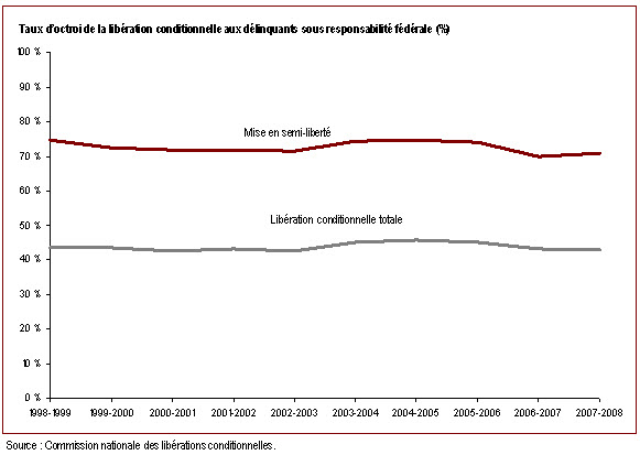 - Le taux d'octroi de la libération conditionnelle aux délinquants sous responsabilité fédérale s'est stabilisé