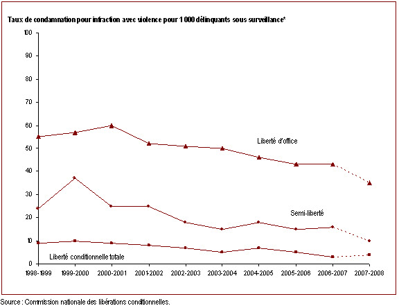- Au cours des dix dernières années, le taux de condamnation pour une infraction avec violence chez les délinquants sous surveillance a diminué