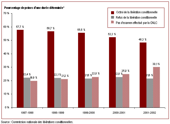 - Plus de 23 % des délinquants purgeant une peine d'une durée déterminée n'ont pas fait l'objet d'un examen de libération conditionnelle