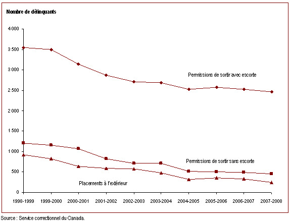 - Le nombre de délinquants obtenant des permissions de sortir a diminué depuis 1998-1999