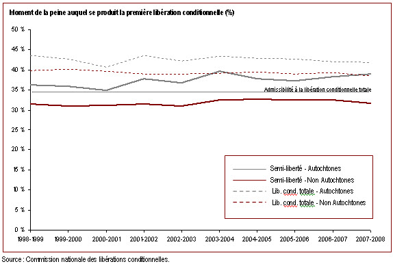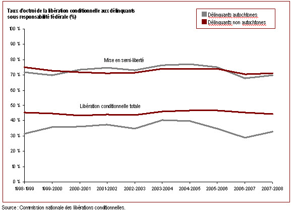 - Les délinquants autochtones purgent une plus grande partie de leur peine avant d'être mis en liberté conditionnelle