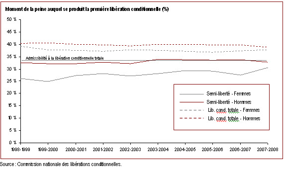 - Les délinquants purgent environ 40 % de leur peine avant leur libération conditionnelle totale
