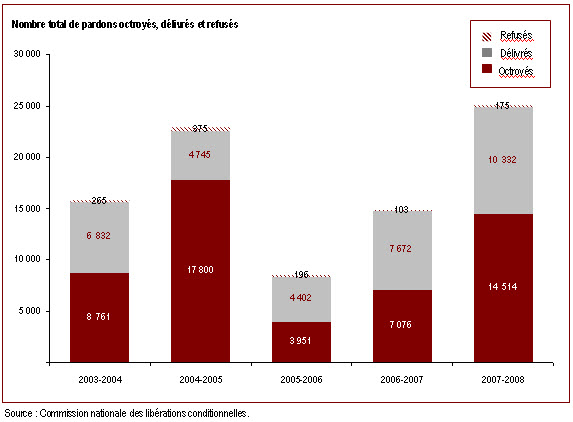 - En 2007-2008, la Commission nationale des libérations conditionnelles a reçu 30 398 demandes de réhabilitation.