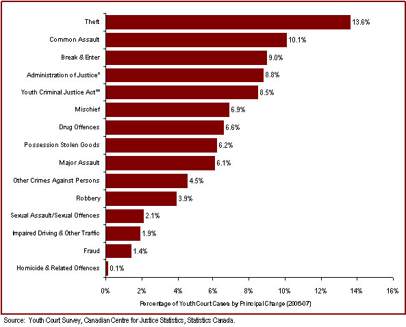 - The most common youth court case is theft