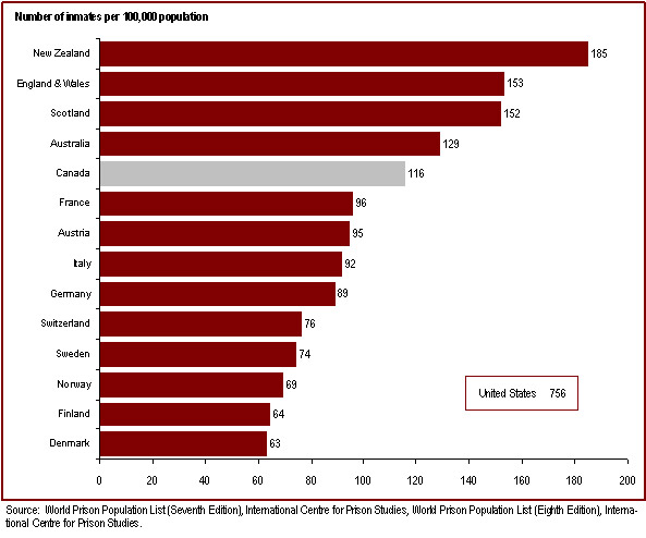 - Canada's incarceration rate is high relative to most Western European countries
