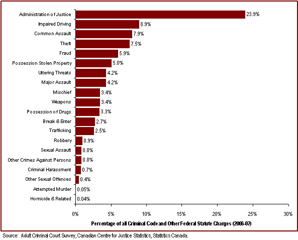 - Administration of justice charges account for 24% of charges in adult courts