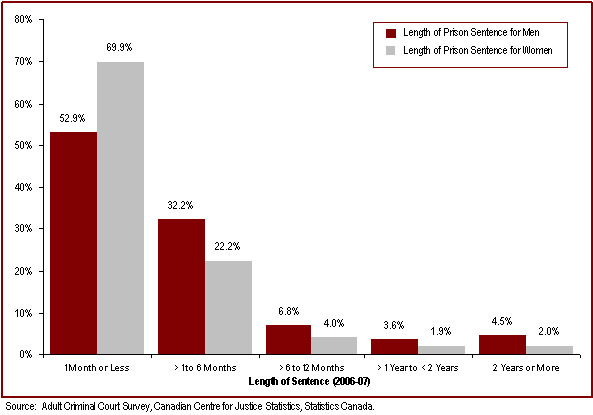 - Most adult custodial sentences ordered by the court are short