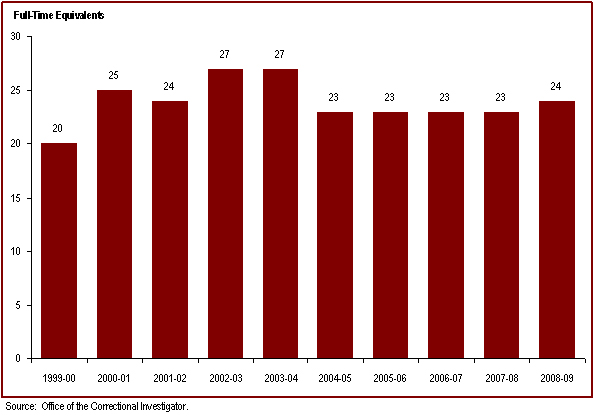 - The number of employees in the Office of the Correctional Investigator