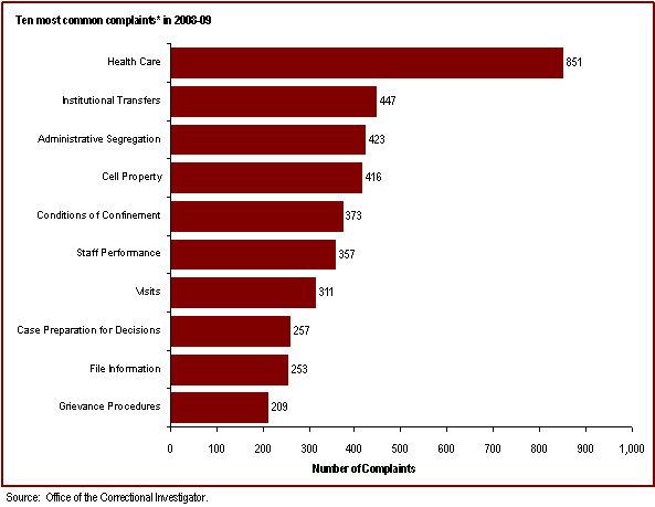 - Health care is the most common area of offender complaint received by the Office of the. Correctional Investigator