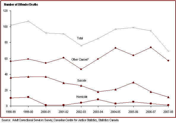- The number of offender deaths while in custody has fluctuated