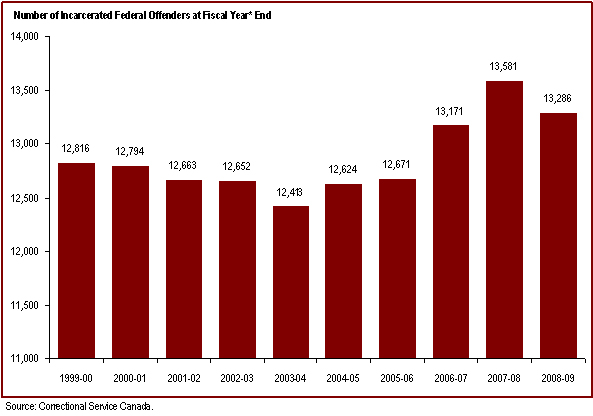 - The number of incarcerated federal offenders decreased in 2008-09