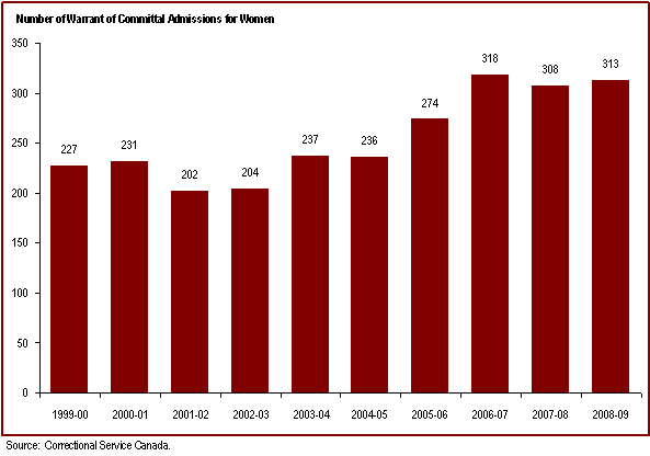 - The number of women admitted from the courts to federal jurisdiction has increased over the past decade
