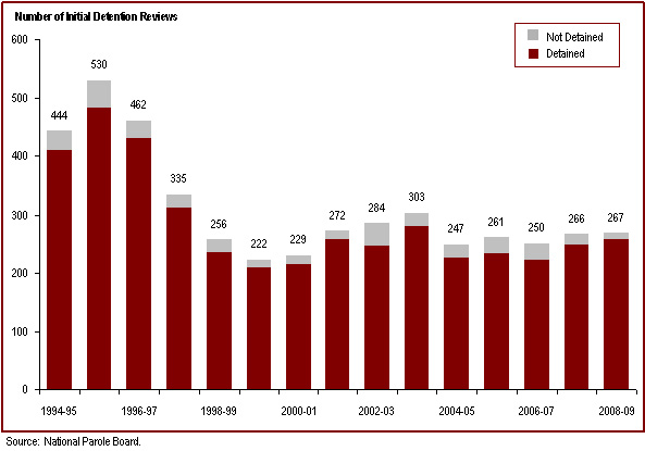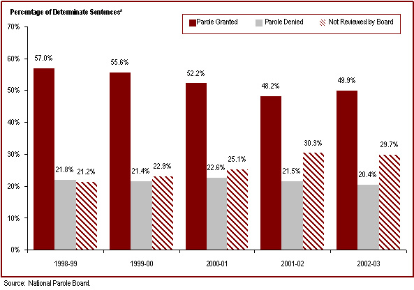 - Over 25% of offenders serving determinate sentences were not reviewed for parole
