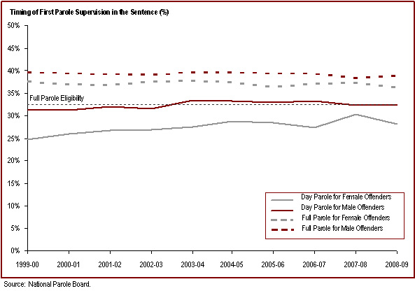 - Women serve a lower proportion of their sentences than men before being released on parole