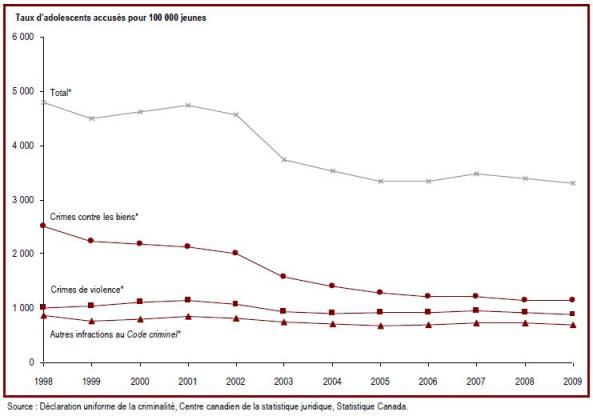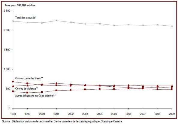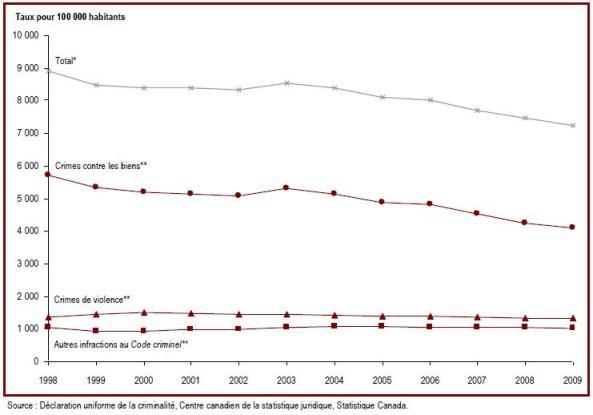 - Depuis 1998, le taux global de criminalité a diminué de 19,0 %, passant de 8 915 pour 100 000 habitants à 7 224 pour 100 000 en 2009.
