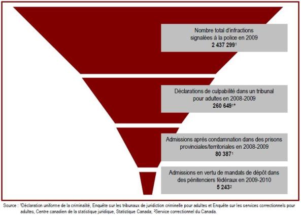 - Un nombre relativement peu élevé de crimes conduisent à l'imposition de peines de détention dans des pénitenciers fédéraux