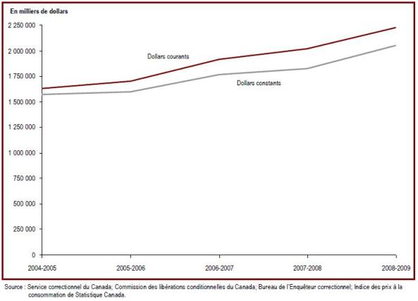 - Les dépenses fédérales au chapitre des services correctionnels ont augmentées en 2008-2009