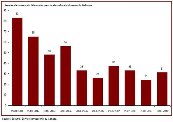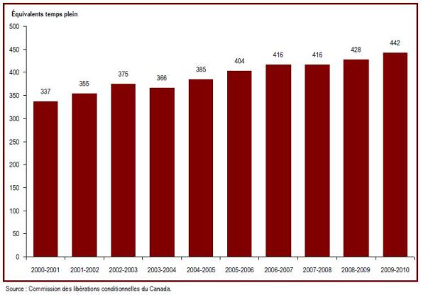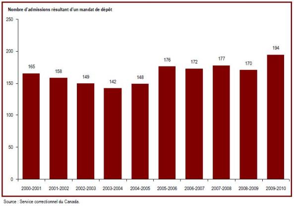 - Le nombre de détenus sous responsabilité fédérale a augmenté en 2009-2010