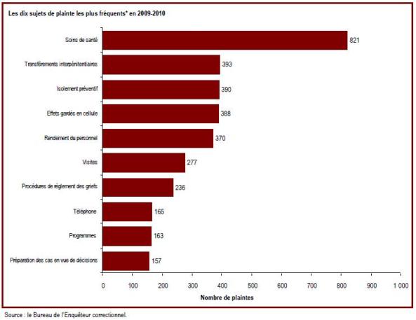 - Les soins de santé est le sujet sur lesquel les délinquants sous responsabilité fédérale portent le plus souvent plainte au Bureau de l'Enquêteur correctionnel