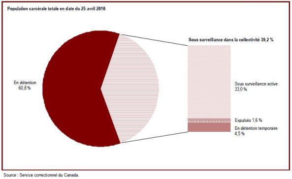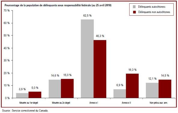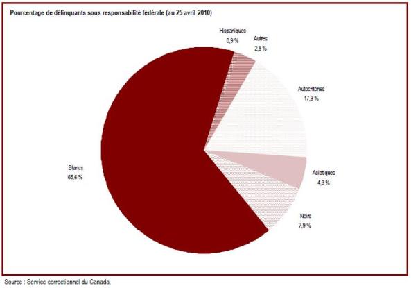 - Soixante-cinq pour cent des délinquants sous responsabilité fédérale sont de race blanche