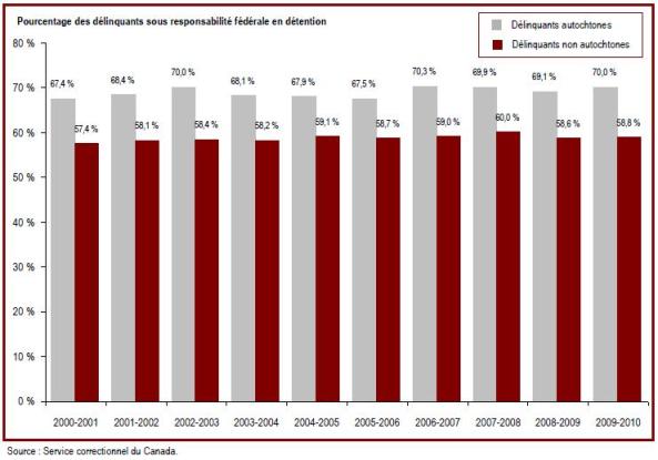 - La proportion de délinquants en détention est plus élevée chez les autochtones que chez les non autochtones