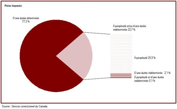 - Les délinquants qui purgent une peine d'emprisonnement à perpétuité ou d'une durée indéterminée représentent 23 % de la population totale de délinquants