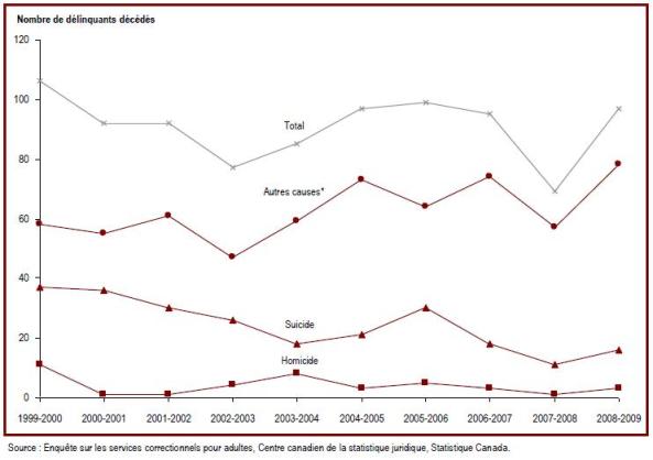 - Le nombre de délinquants décédés dans les établissements fluctue