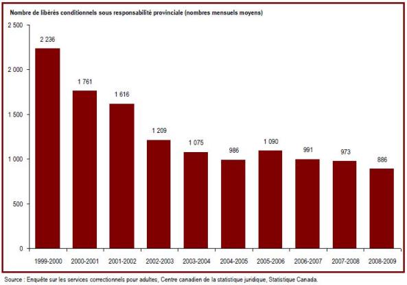 - Au cours de la dernière décennie, le nombre de libérés conditionnels sous responsabilité provinciale a diminué