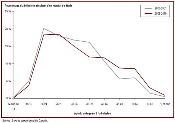 - L'âge des délinquants au moment de leur admission dans un établissement fédéral est en hausse
