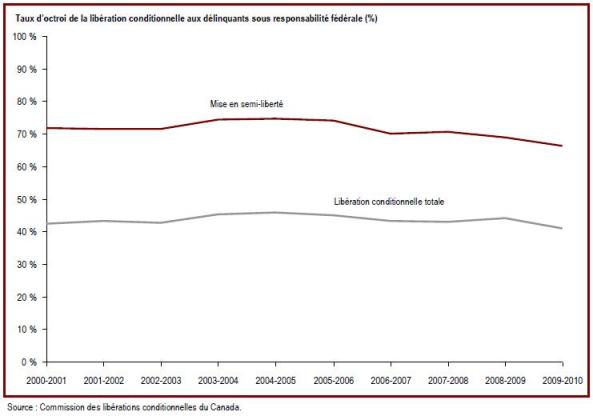 - Le taux d'octroi de la semi-liberté et de la libération conditionnelle totale aux délinquants sous responsabilité fédérale sont à la baisse