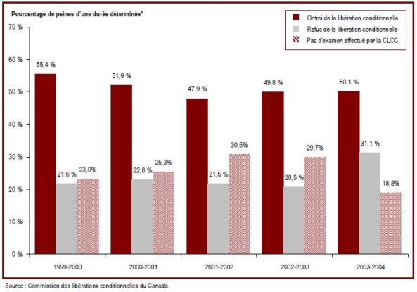 - Plus de 25 % des délinquants purgeant une peine d'une durée déterminée n'ont pas fait l'objet d'un examen de libération conditionnelle