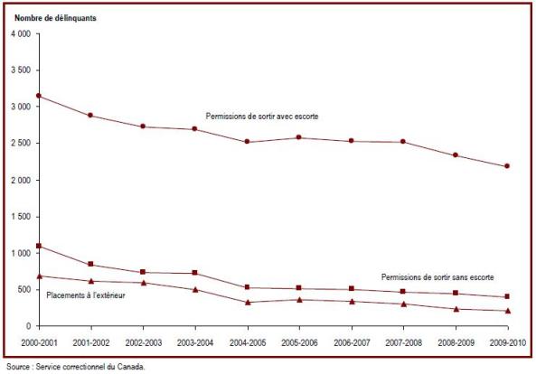 - Le nombre de délinquants obtenant des permissions de sortir a diminué depuis 2000-2001
