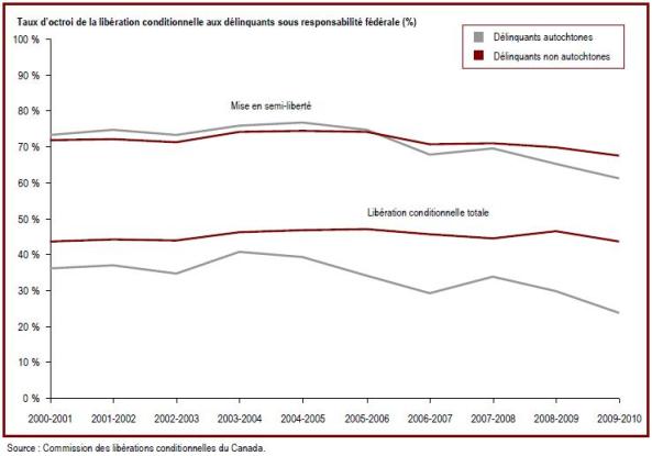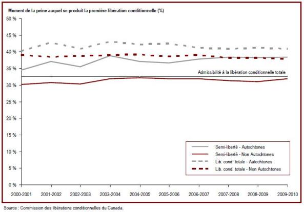 - Les délinquants autochtones purgent une plus grande partie de leur peine avant d'être mis en liberté conditionnelle
