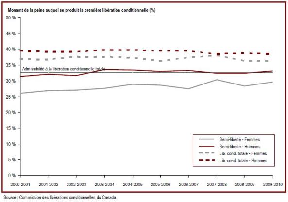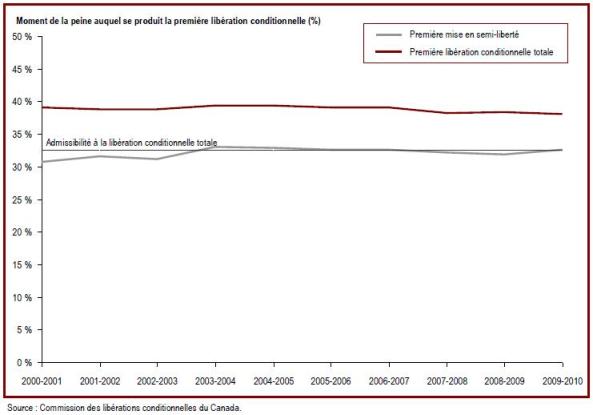 - Les délinquants purgent environ 40 % de leur peine avant leur libération conditionnelle totale