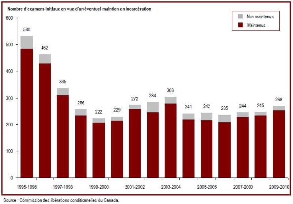 - Le nombre d'examens de cas en vue d'un éventuel maintien en incarcération a fluctué au cours des cinq dernières années