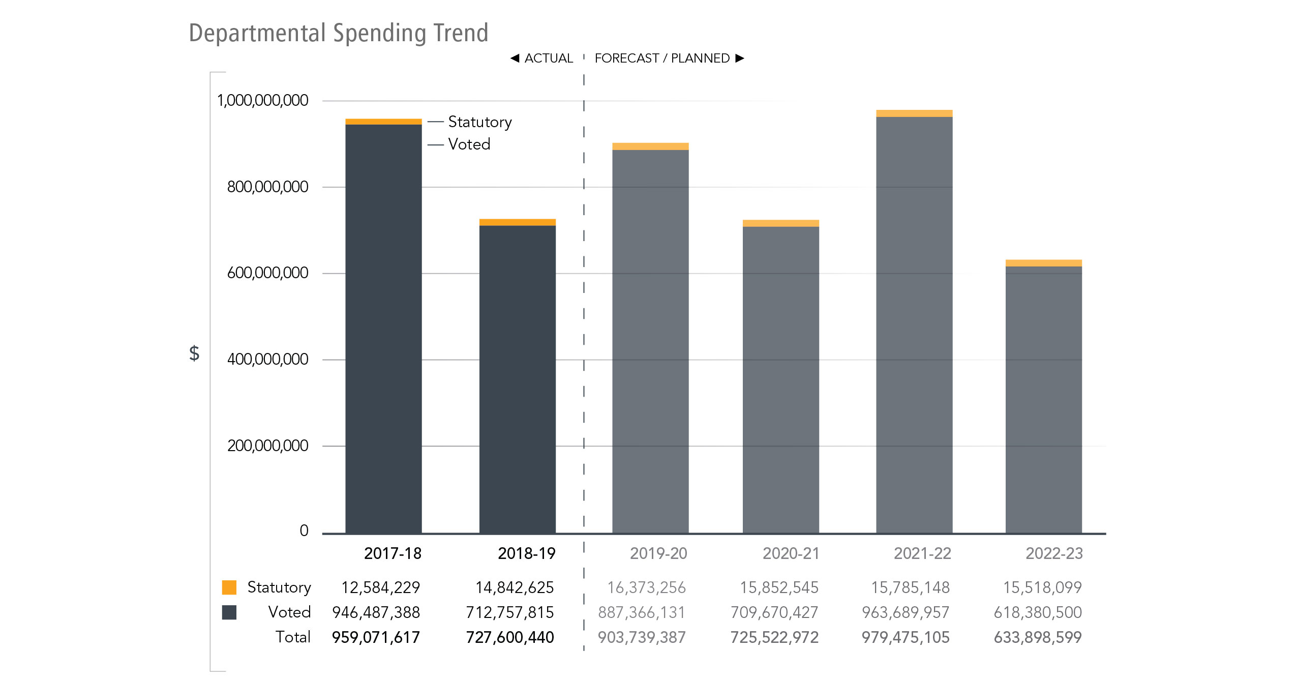 A department is expected to be aware of the authorities that it has sought and received. The determination of planned spending is a departmental responsibility, and departments must be able to defend the expenditure and accrual numbers presented in their Departmental Plans and Departmental Results Reports. - program (programme)