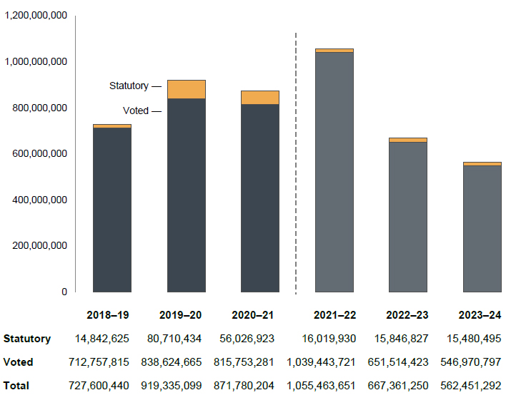 2021–22 budgetary spending (as indicated in Main Estimates) 2021–22 planned spending 2022–23 planned spending 2023–24 planned spending